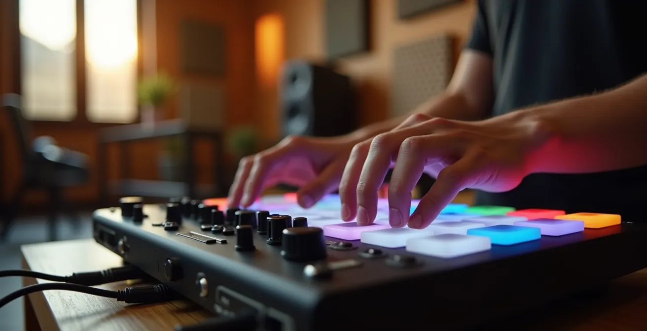 Le choix de votre surface de jeu principale n’est pas anodin. Il ne s’agit pas seulement de confort, mais d’une décision qui va profondément orienter votre processus créatif. Comme le dit l’expert en finger drumming Tim Kroker, « L’interface que vous choisissez ne définit pas seulement votre confort de jeu, elle oriente fondamentalement le type de musique que vous allez créer ». Un claviériste et un « paddiste » ne pensent pas la musique de la même manière. Le premier pense en termes de notes, d’harmonies, de progressions d’accords. Le second pense en motifs, en boucles, en textures rythmiques.